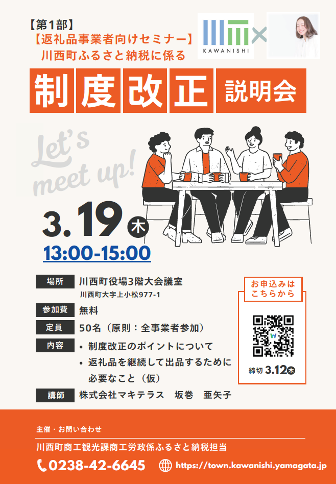 本制度改正に伴い、既存事業者、新規でふるさと納税に取り組む事業者を対象に説明会を行います。