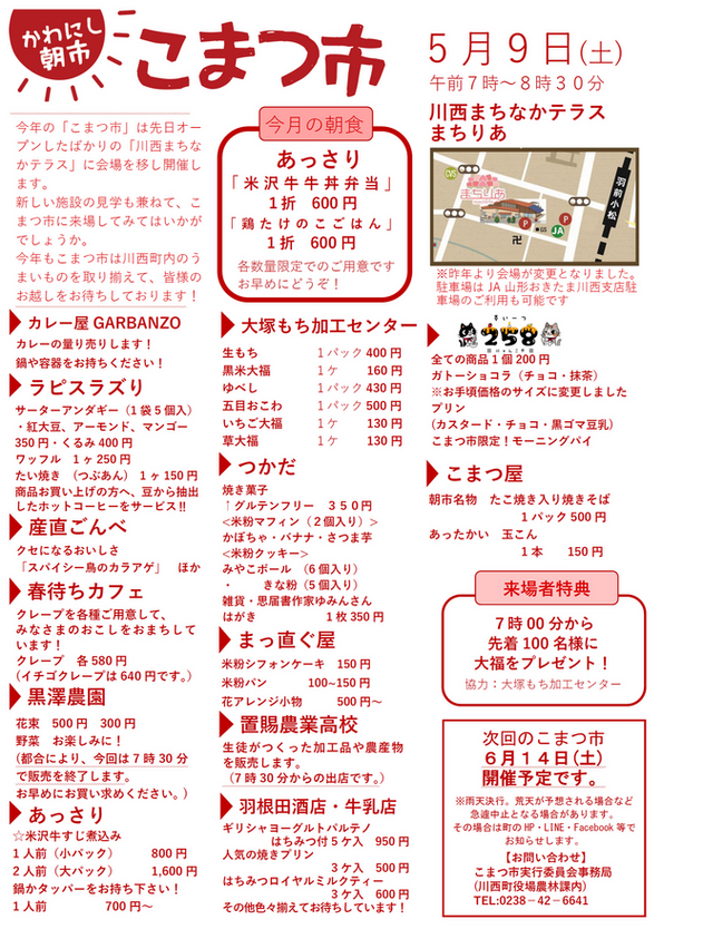 ※昨年度会場の川西町役場駐車場より会場が変更となりました。ご来場の際はお間違いないようご注意ください。