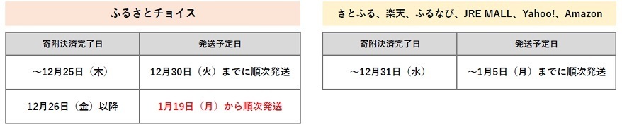 入金確認後2~3週間程度で株式会社さとふるより送付します。