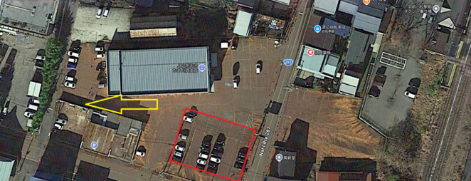 JA駐車場利用の際は、図の赤枠部分(JA山形おきたま川西支店建物南側)に駐車し、徒歩でご来場ください。